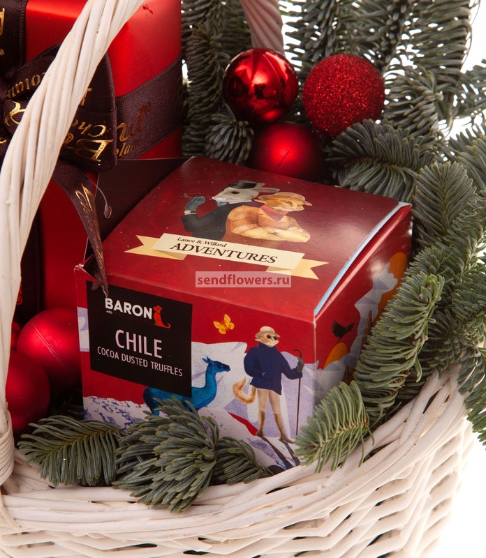 Состав: Оазис кирпич (1), Корзина малая (1), Лапник (1), Лента натуральная (2), Шарики-мини (пластик) (9), ФРАНЦУЗСКИЕ ТРЮФЕЛИ "BARON" со вкусом чили 100гр. (1), Набор шоколадных конфет "Red" (1)